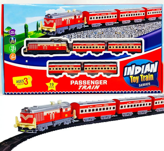 Indian Railways Passenger Toy Train Track Set for Kids with Front Glowing Light | Gift for Kids | Suitable Age 2+, 3+, 4+, 5+ Years