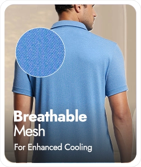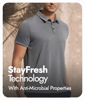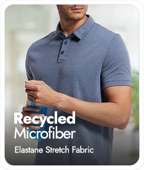 Recycled Microfiber Elastane Stretch Fabric | Fabric Composition: Recycled Polyester and Elastane | Breathable Mesh for Enhanced Cooling | StayFresh Treatment with Antimicrobial Properties to Help You Stay Fresh Throughout the Day | StayDry Treatment with Additional Evaporation Properties to Help You Stay Dry Throughout the Day | Smartfabric - Takes Quality and Comfort to the next level | Polo Neck | Label Free for All Day Comfort